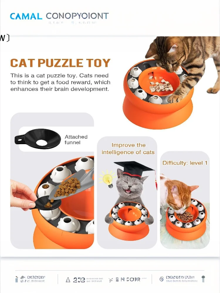 [Safe design and food-grade raw materials]Cat Puzzle Feeder is made entirely of food-grade ABS. The product’s raw materials do not contain bisphenol A, PVC or phthalates. All components of the toy are designed with rounded edges, without sharp corners, ensuring the complete safety and health of cats.