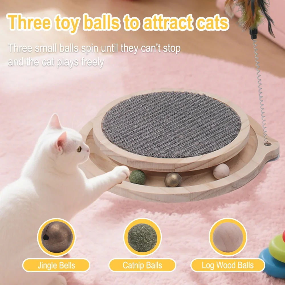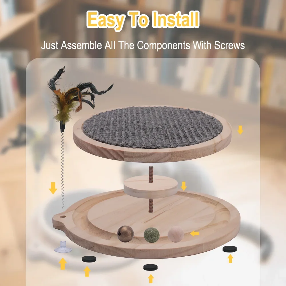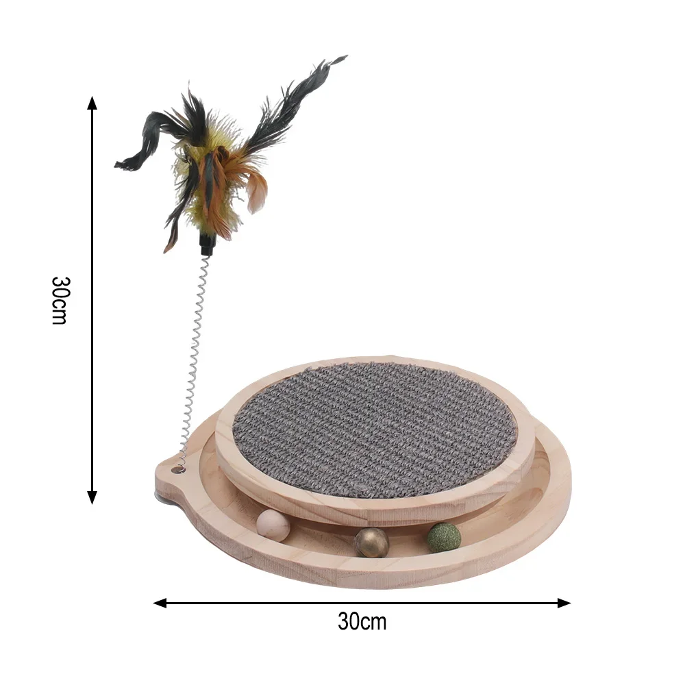 Combines scratching and play functions with a rotating turntable structure , featuring reinforced natural sisal tightly woven for durability and shred-free performance.