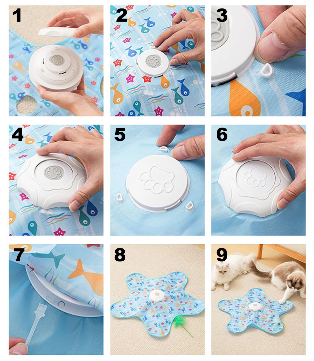 -Automatic Cat toy: It hides and moves quickly in the irregular cloth cover, the feather appear and disappear constantly, stimulating the cats to search, engaging them in hiding, and chase games
