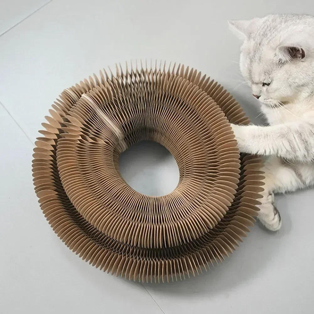 Magic Organ Cat Scratching Board Cat Grinding Claw Scratching Board Foldable Round Corrugated Cats Interactive Toys Pet Supplies