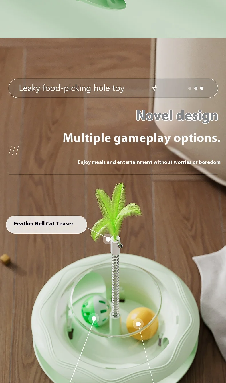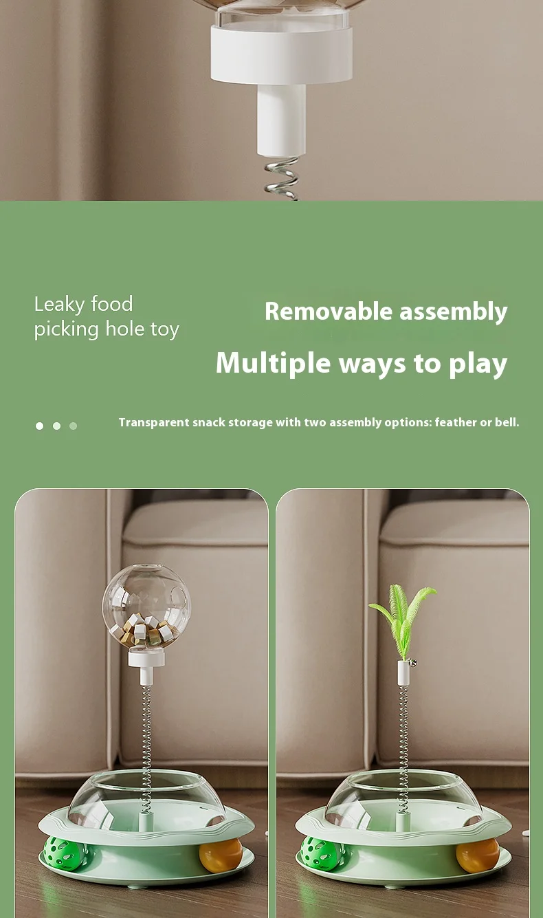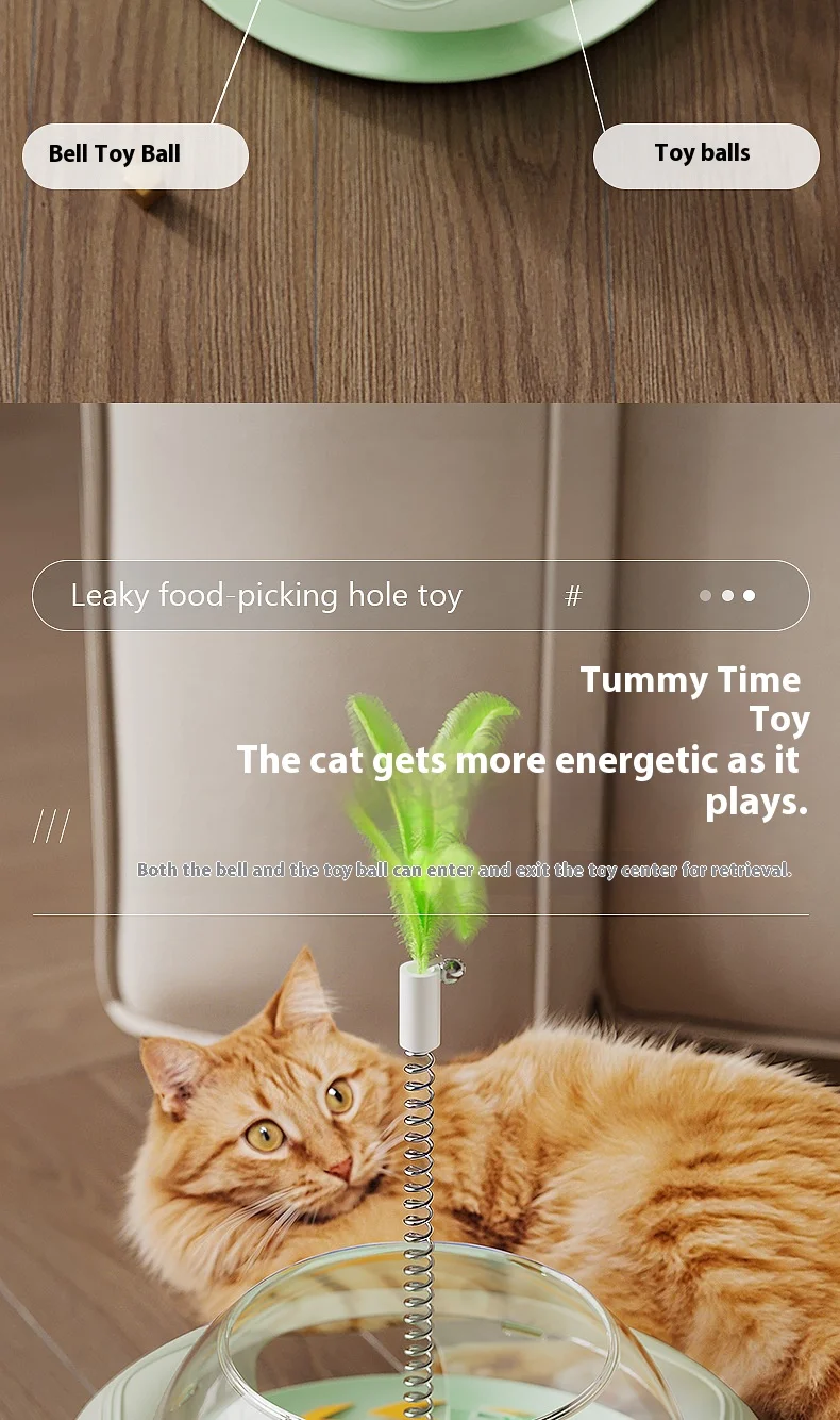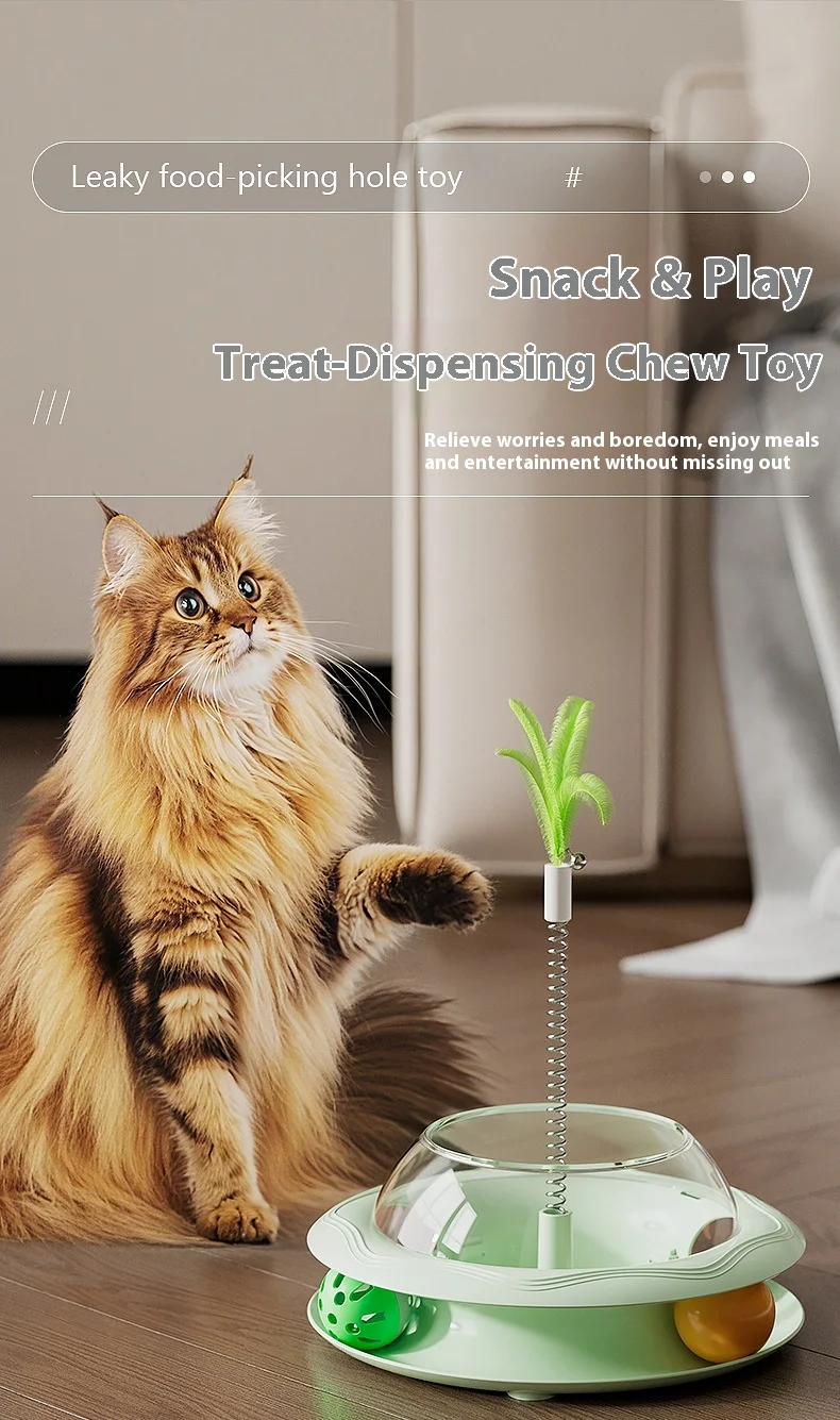 New Cat Treat Dispenser Toy with Spinning Ball – Self Play Puzzle Feeder Replaceable Feather Teaser Boredom Relief