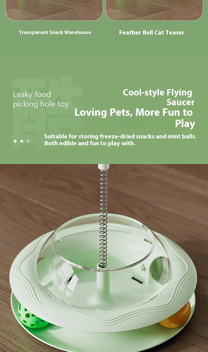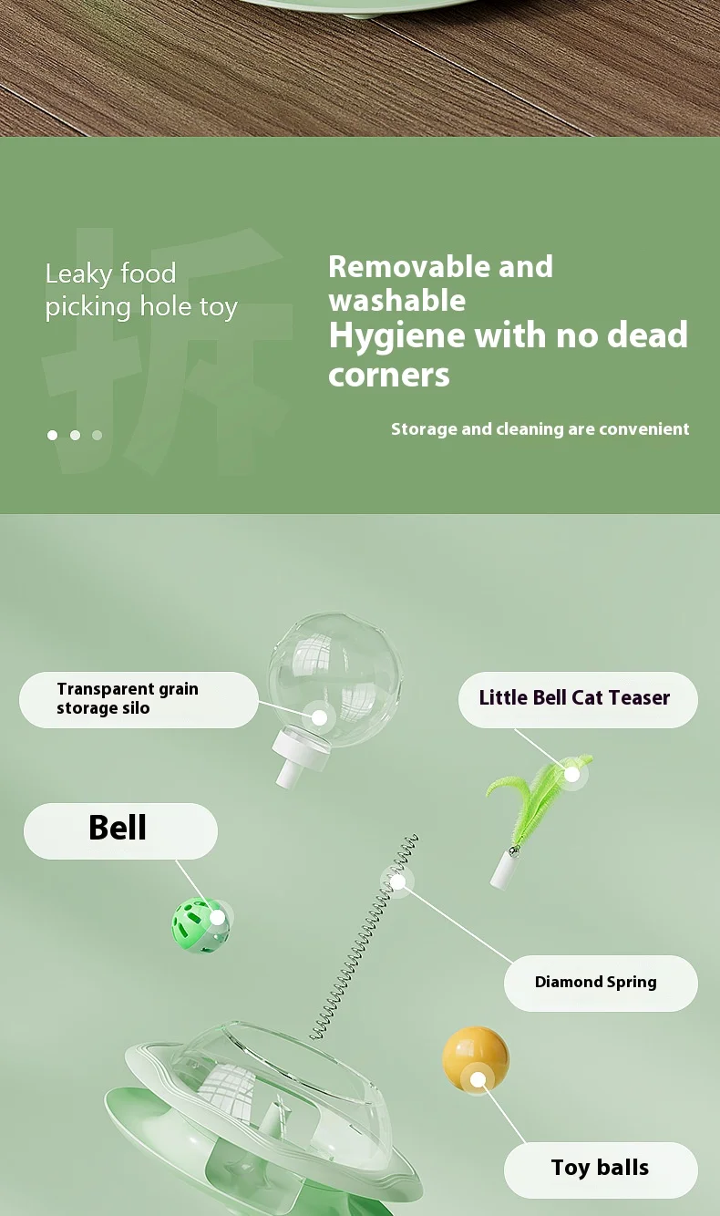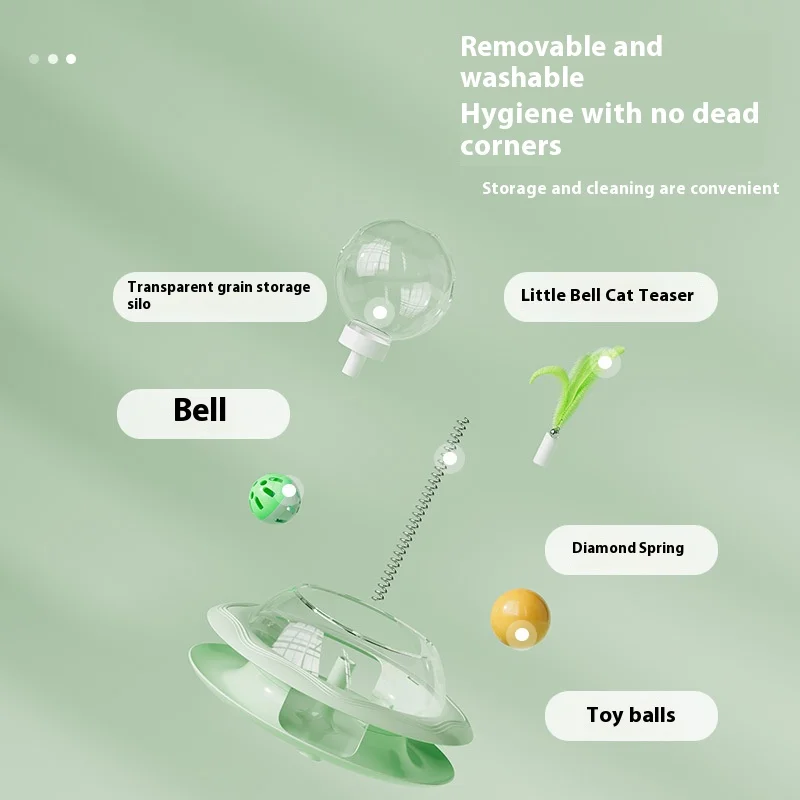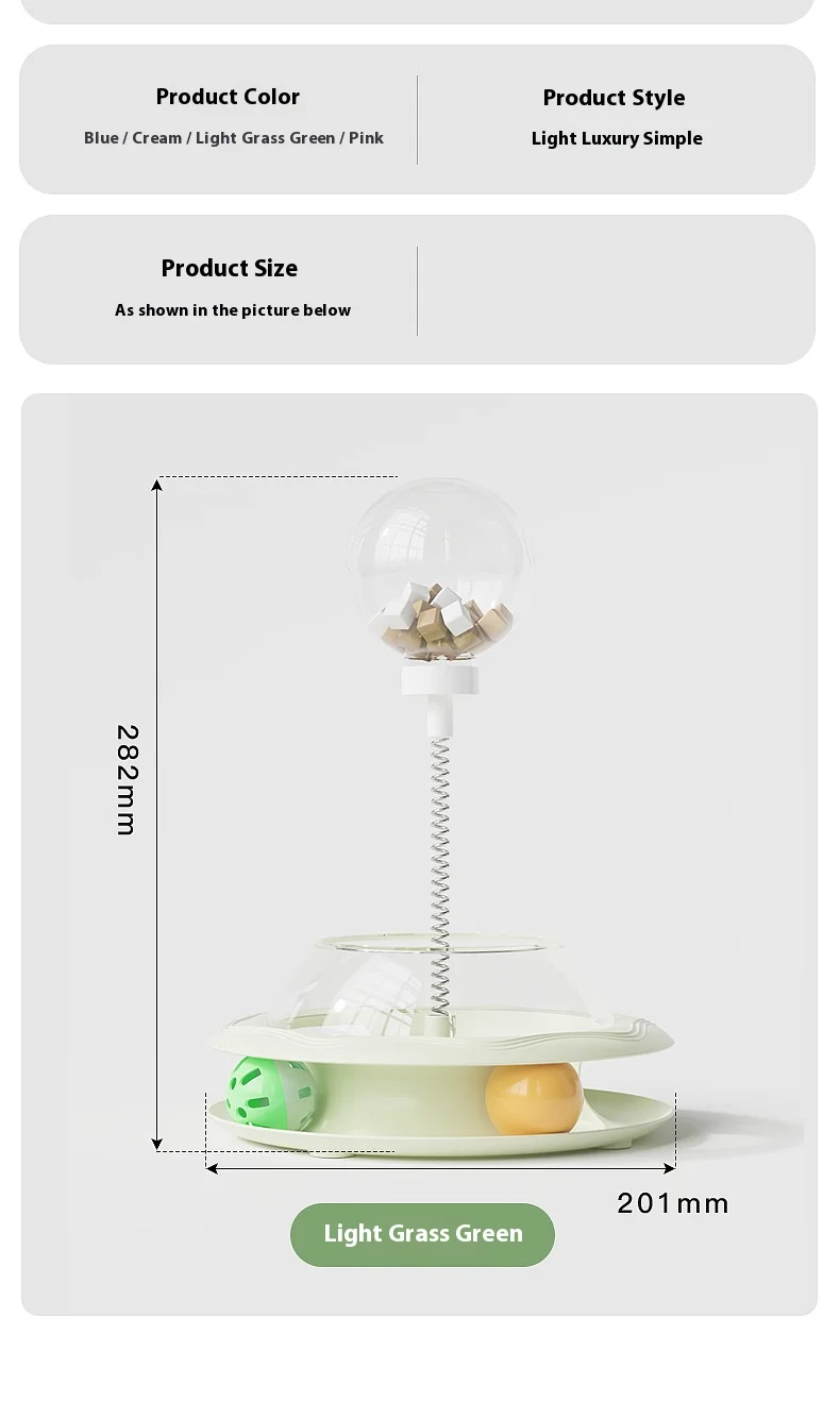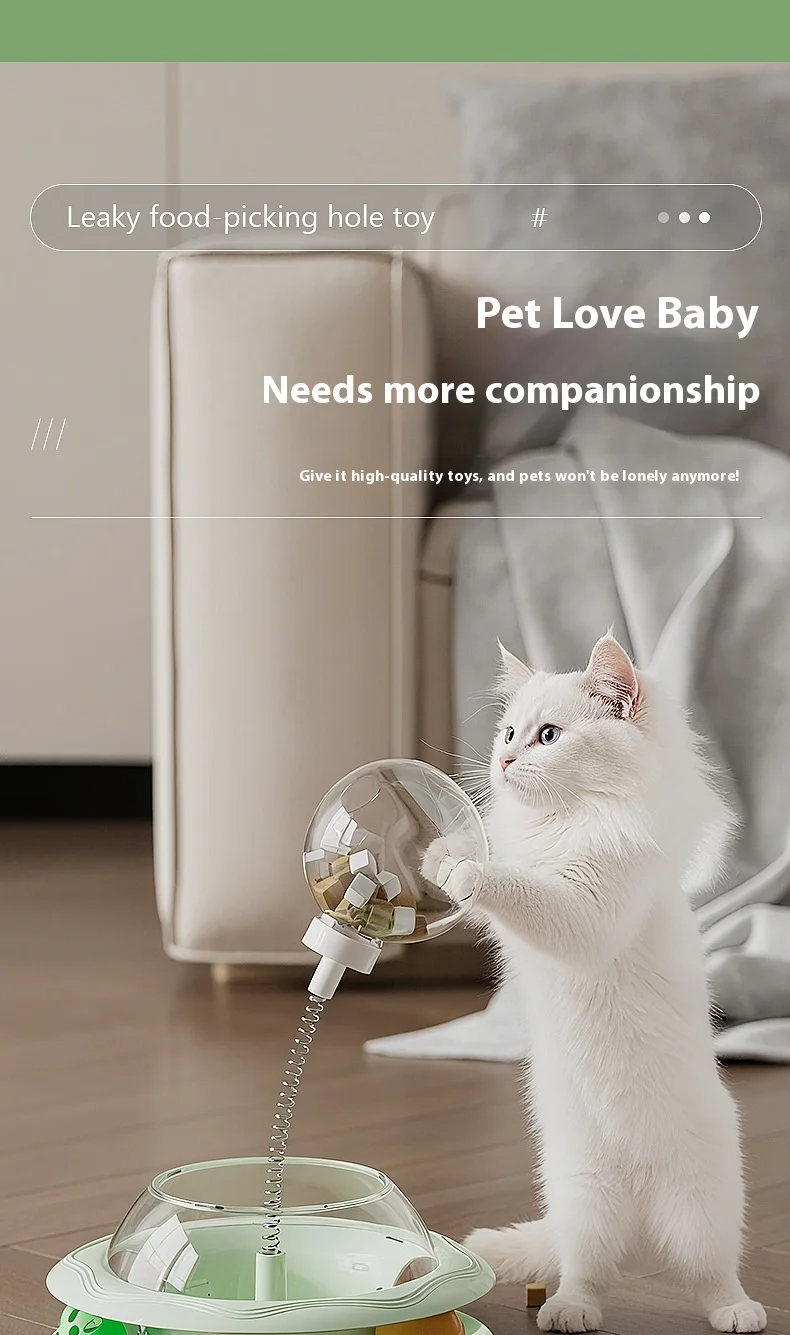 New Cat Treat Dispenser Toy with Spinning Ball – Self Play Puzzle Feeder Replaceable Feather Teaser Boredom Relief