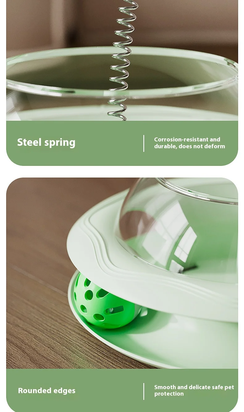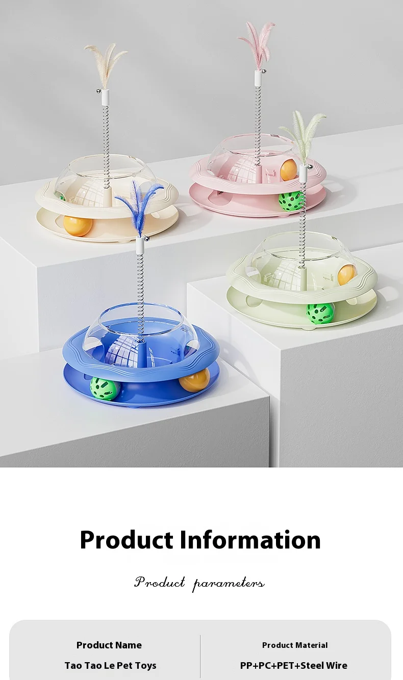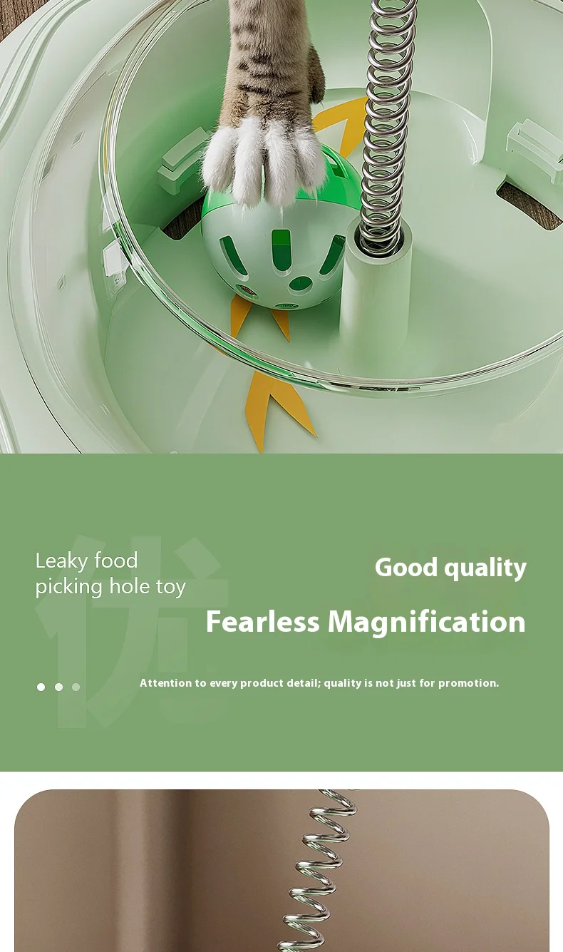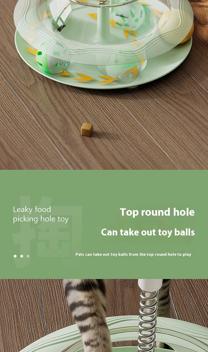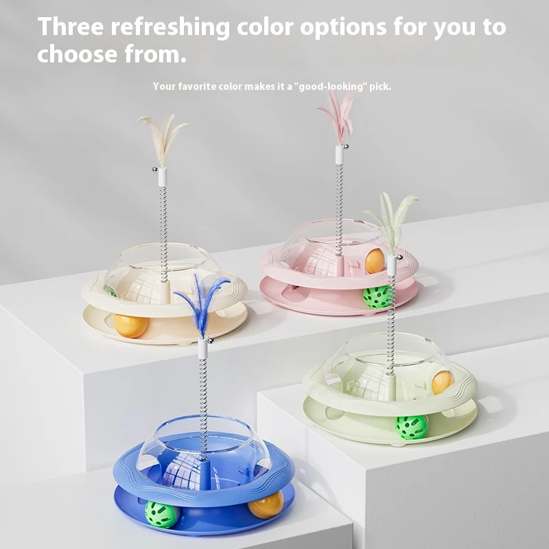 New Cat Treat Dispenser Toy with Spinning Ball – Self Play Puzzle Feeder Replaceable Feather Teaser Boredom Relief