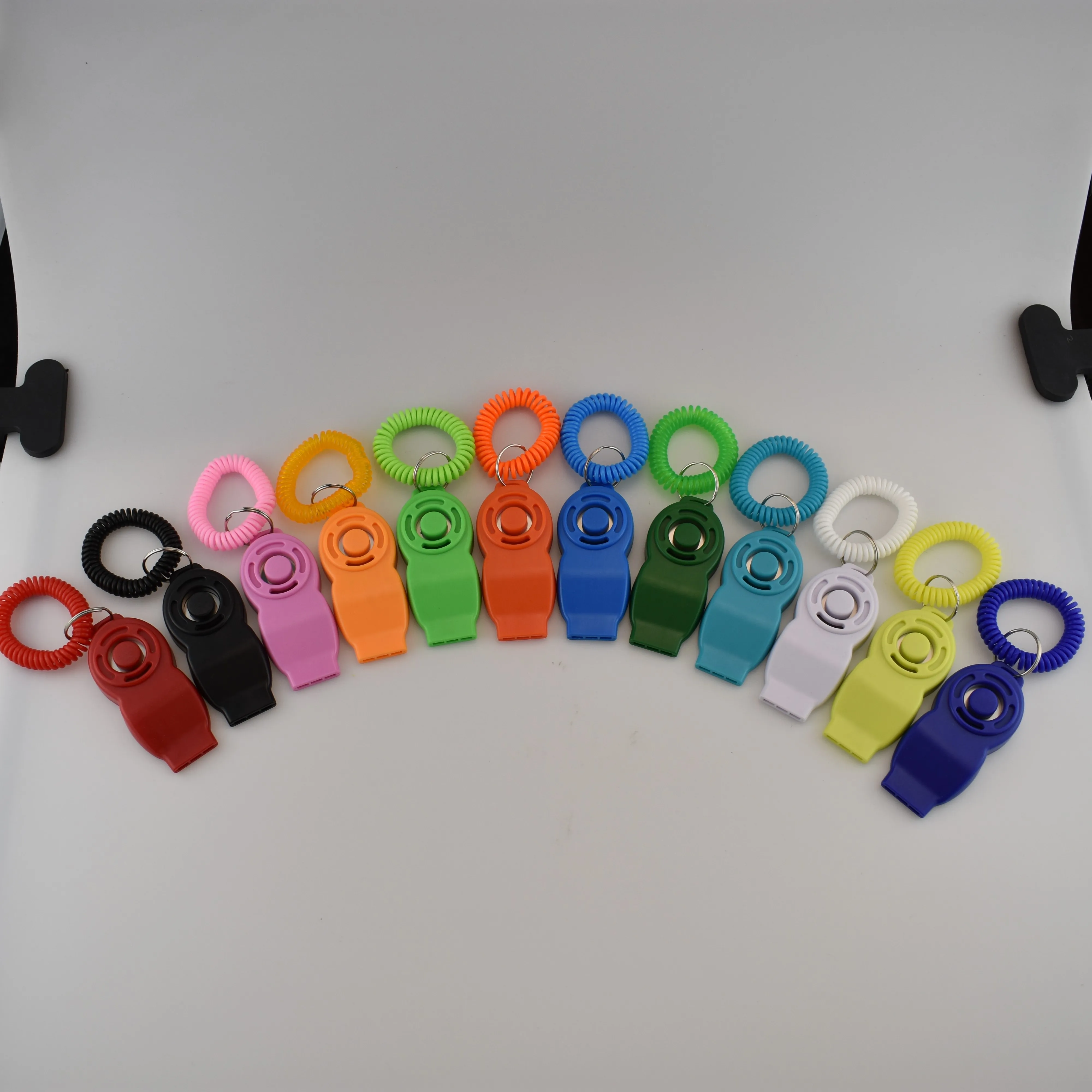 pet training clicker and whistle 2-in-1 with colorful wristband