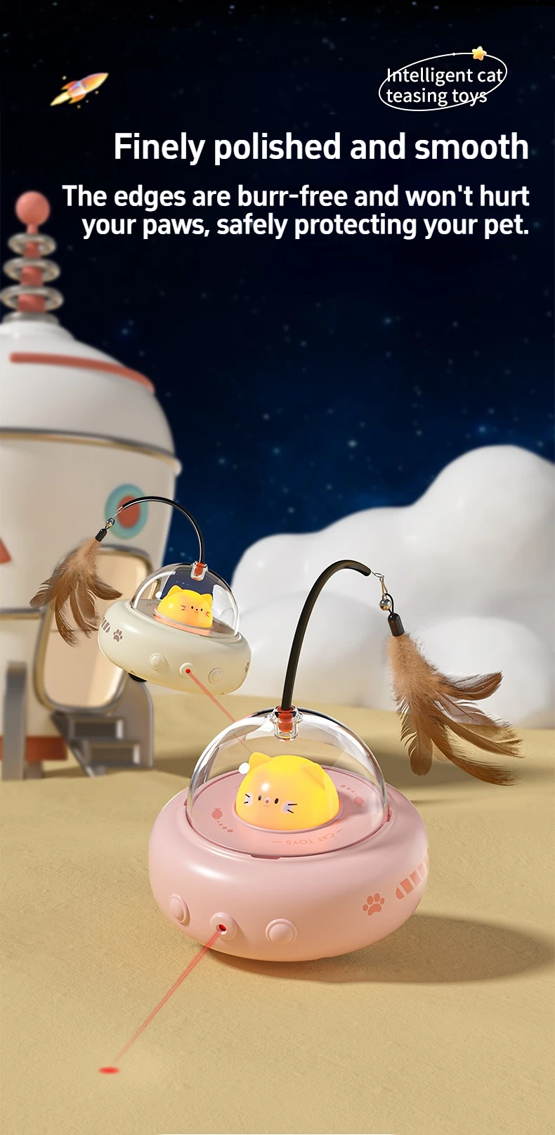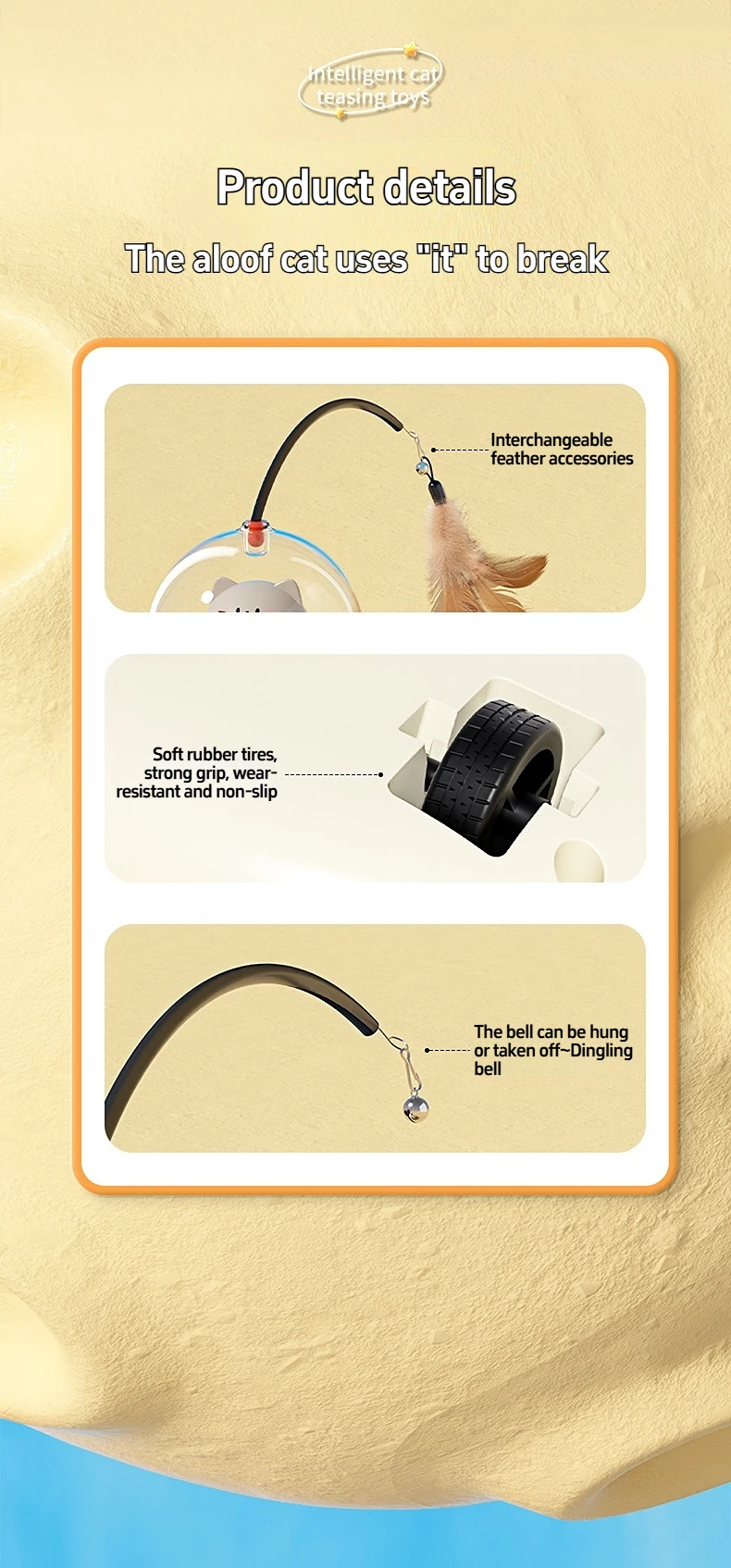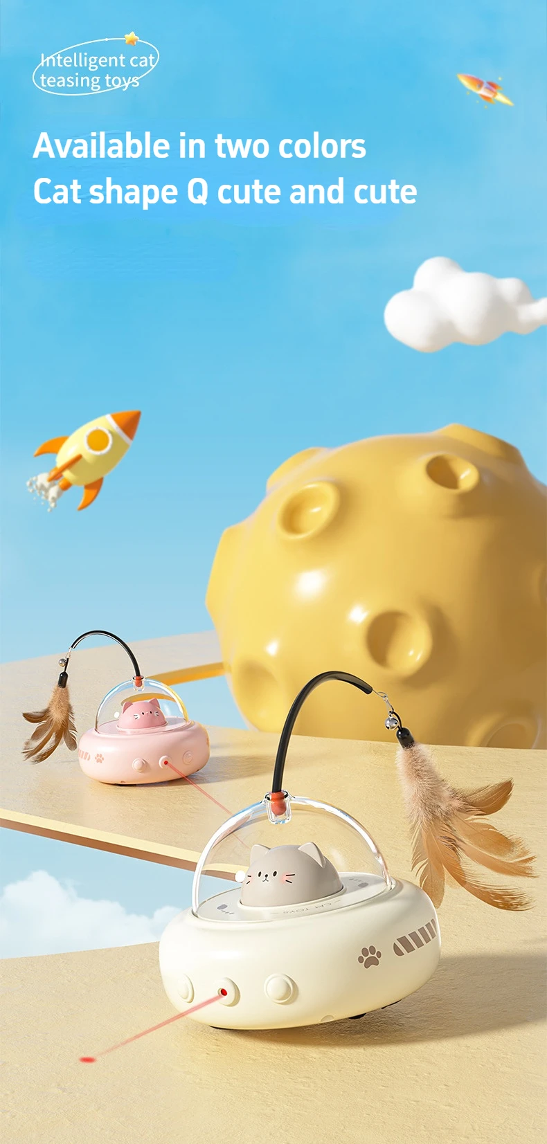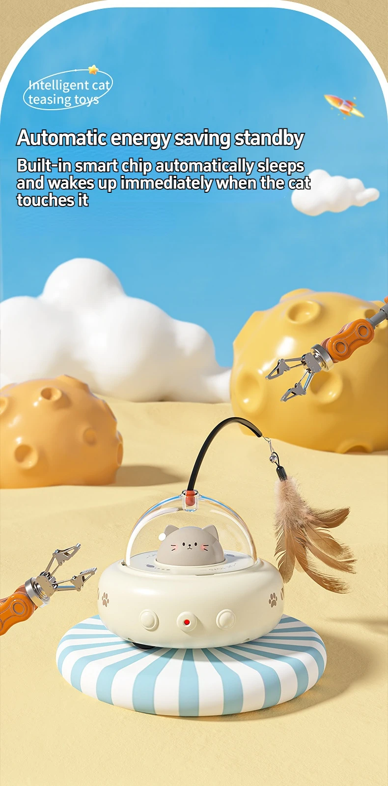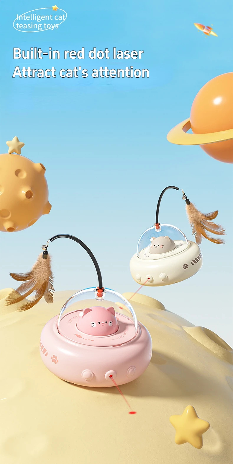 Smart Teaser Cat Toy Electric UFO Cat Teaser Stick With Bell Training Pet Toys Replaceable Feather Interactive Cat Supplies