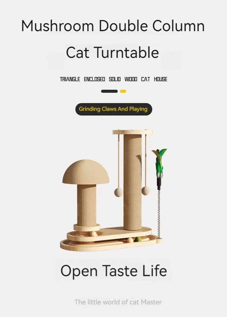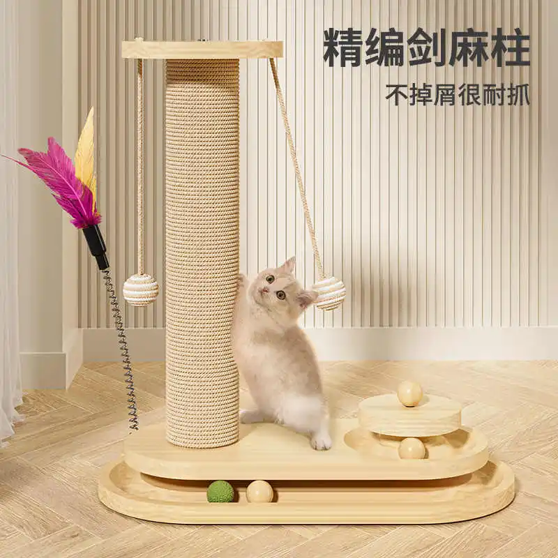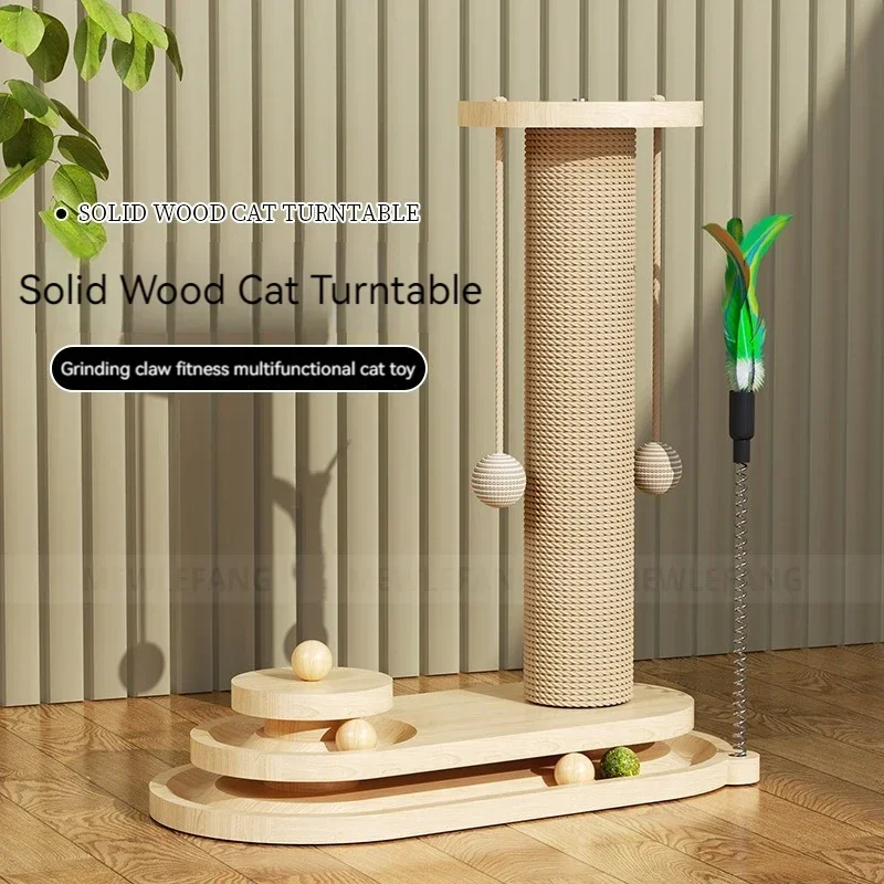 Solid Wood Cat Scratch Board Pet Cat Turntable Scratch Pillar Board Sisal Wear-resistant Self Pleasure Relieve Vertical Cat Toy