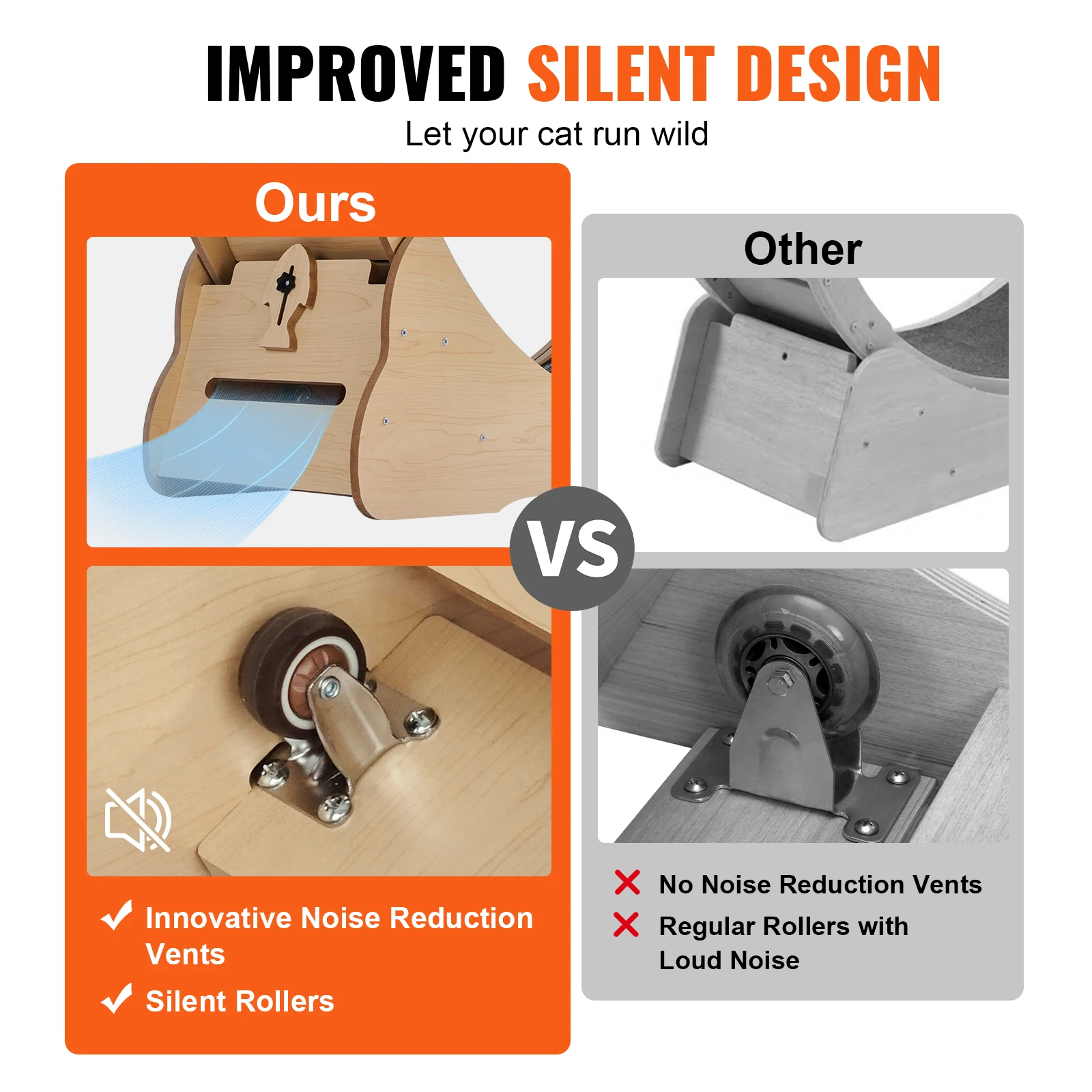 • Quiet and Comfortable Environment: Featuring a built-in silent wheel and a bottom noise-reduction mechanism, this dual-layer noise reduction system ensures a peaceful and enjoyable exercise experience for your pets, while enhancing the overall indoor ambiance